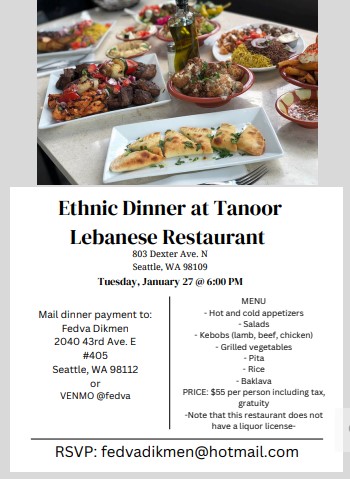 As we start this new year, I am excited to extend a warm invitation to an ethnic dinner I have organized at my favorite Middle Eastern restaurant. It's a wonderful opportunity for us to gather, enjoy delicious food, and strengthen our bonds as friends and colleagues. The restaurant has kindly honored the same price as last year, which makes this event even more special and accessible. I am looking forward to sharing a memorable evening with all of you, filled with good conversation and great cuisine. Please RSVP by emailing me at fedvadikmen@hotmail.com and paying via the options on the flyer. Hope to see you there! -Fedva |