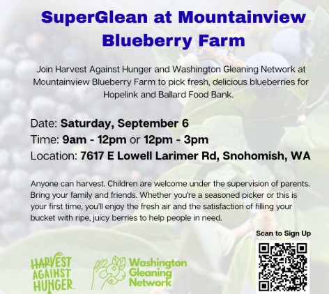 Join other Rotary District 5030 Rotarians for a special Labor Day blueberry glean in support of Harvest Against Hunger and the Washington Glean Network!
